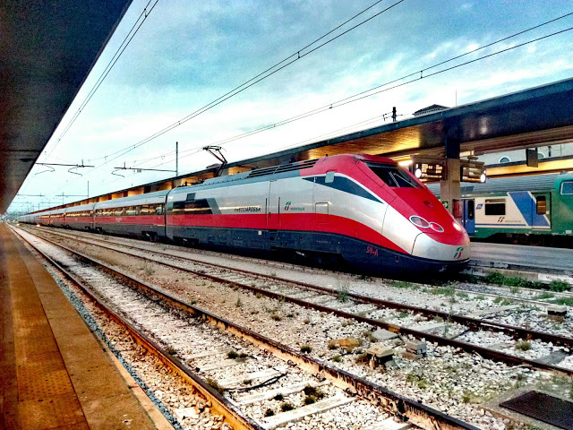 Отдельной темы заслуживает итальянская ЖД, цены значительно выше чем у нас в среднем от 3€ цена проезда, между городами примерно 20€, в период акций можно и дешевле. Скорость в среднем 140 км час и выше. Комфорт — мягко, хорошая вентиляция, кондиционер, чисто. Из минусов нет Wi-Fi, но есть розетки. Билеты проверяют, 3 раза ехали не проверяли на 4й прошли контроль билетов. Билеты можно купить на сайте через интернет, в кассе или в специальных автоматах, при покупке в кассе или автомате, белые перед входом в вагон нужно активировать. Билет купленный через интернет можно распечатать или показать на телефоне электронный билет.