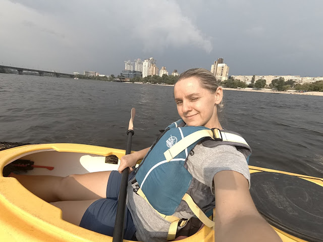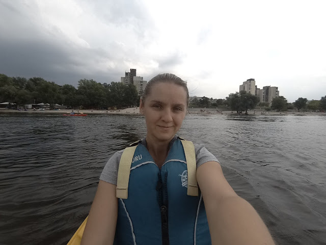Первые минут пять было очень не привычно, нужно было привыкнуть к тому как держать равновесие. Как взяться за весло, выробатать технику как грести. Но после того как входишь в ритм, наступает момент когда ты быстро начинаешь рассекать водные просторы Днепра.