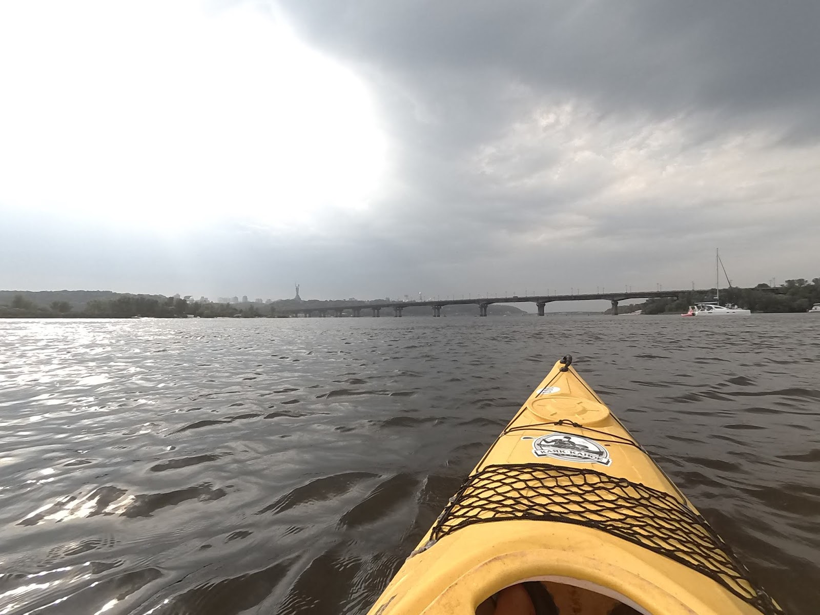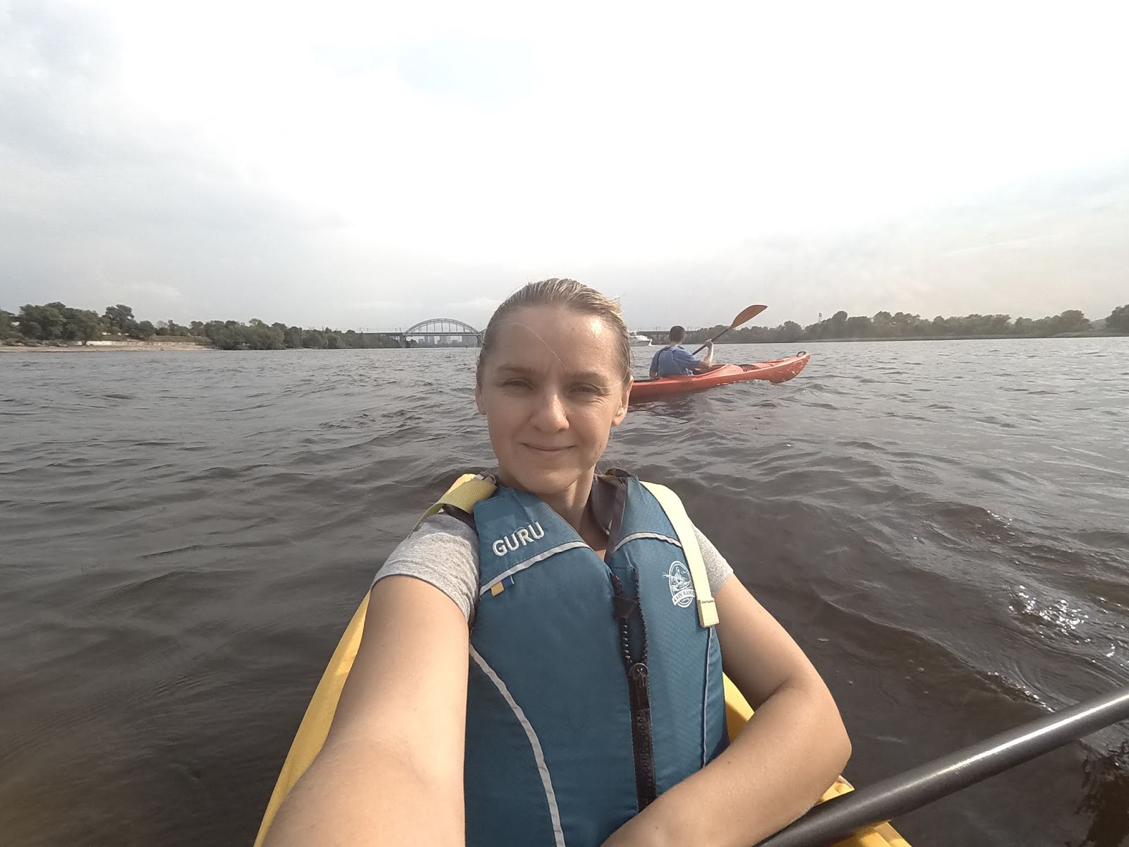 Первые минут пять было очень не привычно, нужно было привыкнуть к тому как держать равновесие. Как взяться за весло, выробатать технику как грести. Но после того как входишь в ритм, наступает момент когда ты быстро начинаешь рассекать водные просторы Днепра.