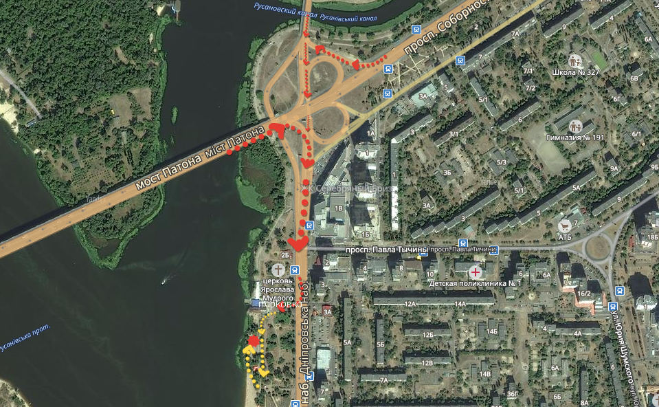 Как добраться : Если Вы будете ехать на своем авто — надо свернуть (с моста Патона) на Днепровскую Набережную, проехать ТЦ SilverBreez и свернуть на парковку направо (возле бывшего ресторана «Каравелла»).