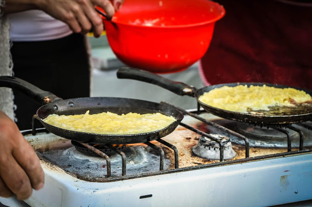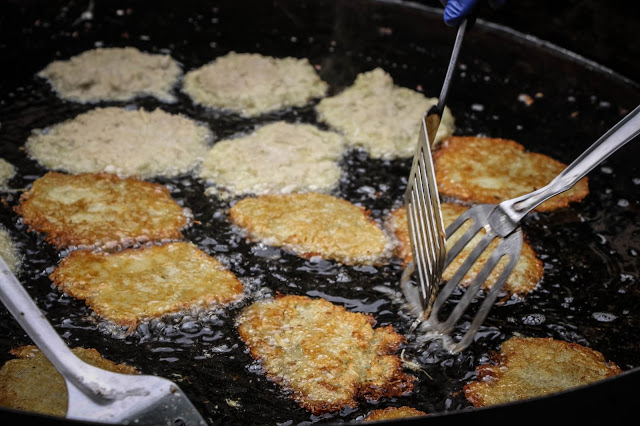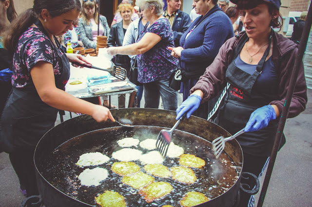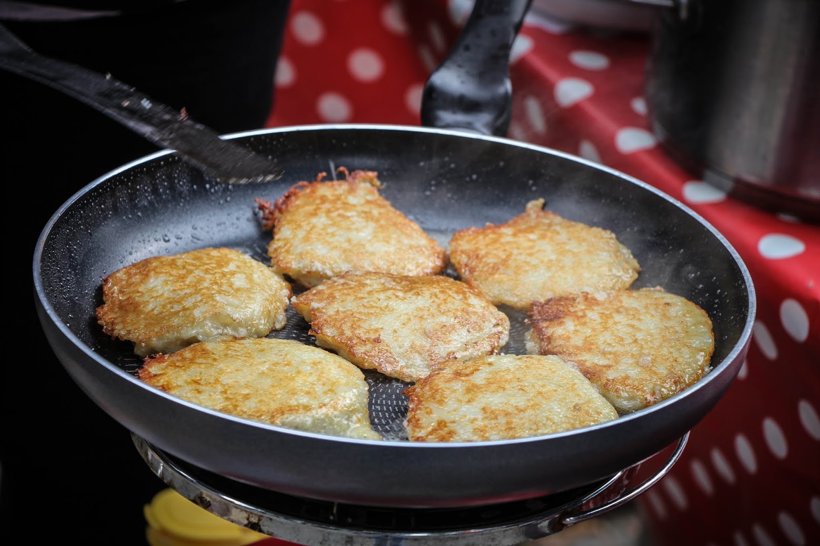 На фестивале было очень много участников которые готовили деруны прямо на месте.