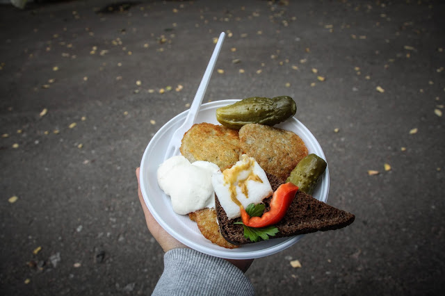А тем временем и мы проголодались и решили Взять взять по порции дерунов. С Огурчиками и бутербродами с салом, куда же без Сала на таком празднике :))