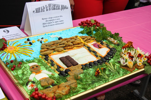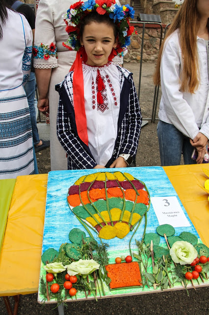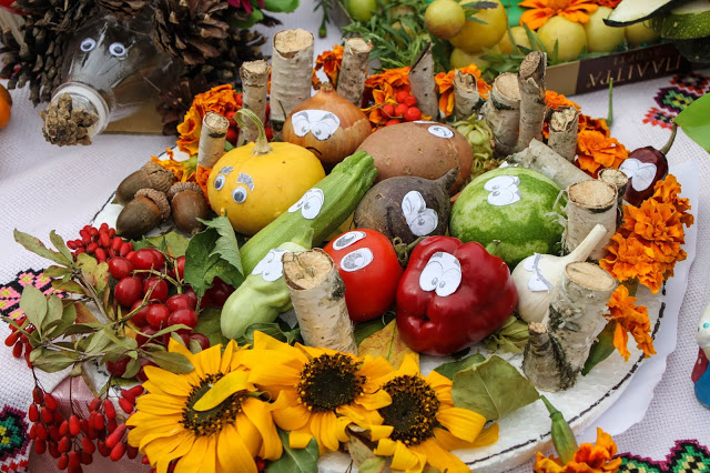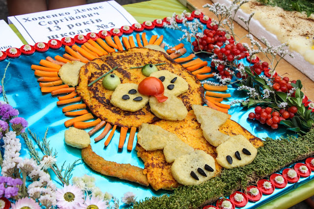 Каждая палатка с едой была украшена невероятно оригинальным и ярким способом. Было очень много поделок из овощей и фруктов. Каждый пытался сделать что-то очень-очень оригинальное.