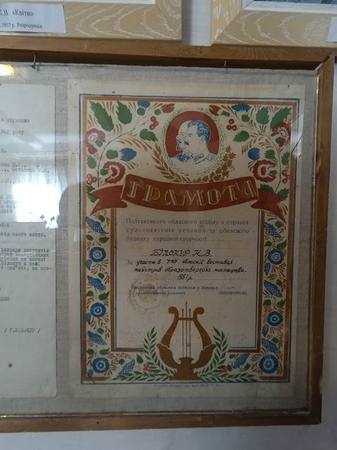 В Моей памяти навсегда останется воспоминания об уютном жилище художницы Екатерины Билокур, талантливой женщины. Здесь рождались ее шедевры, здесь она работала и отдыхала, здесь 9 июня 1961 угасла ее земная жизнь. На большой фотографии — улыбающаяся очаровательная женщина, прощаясь желает Вам счастья, и эту ласковую улыбку Вы унесете с собой в сердце.