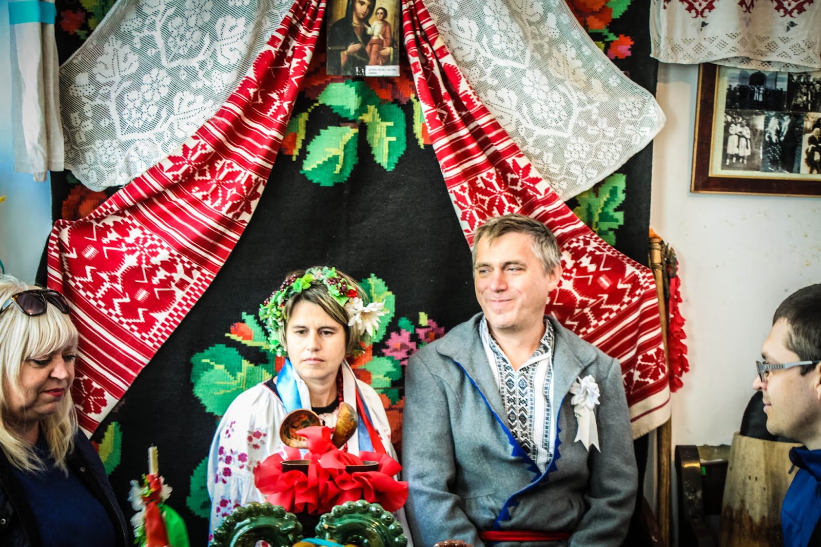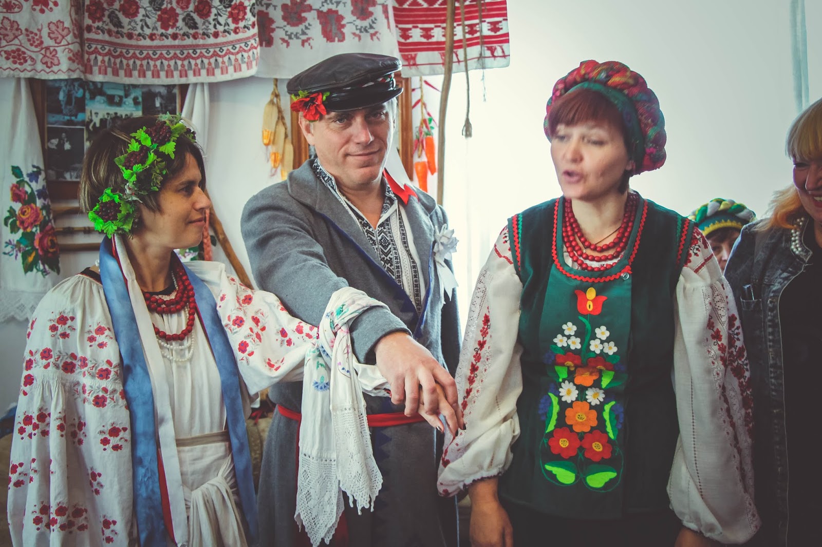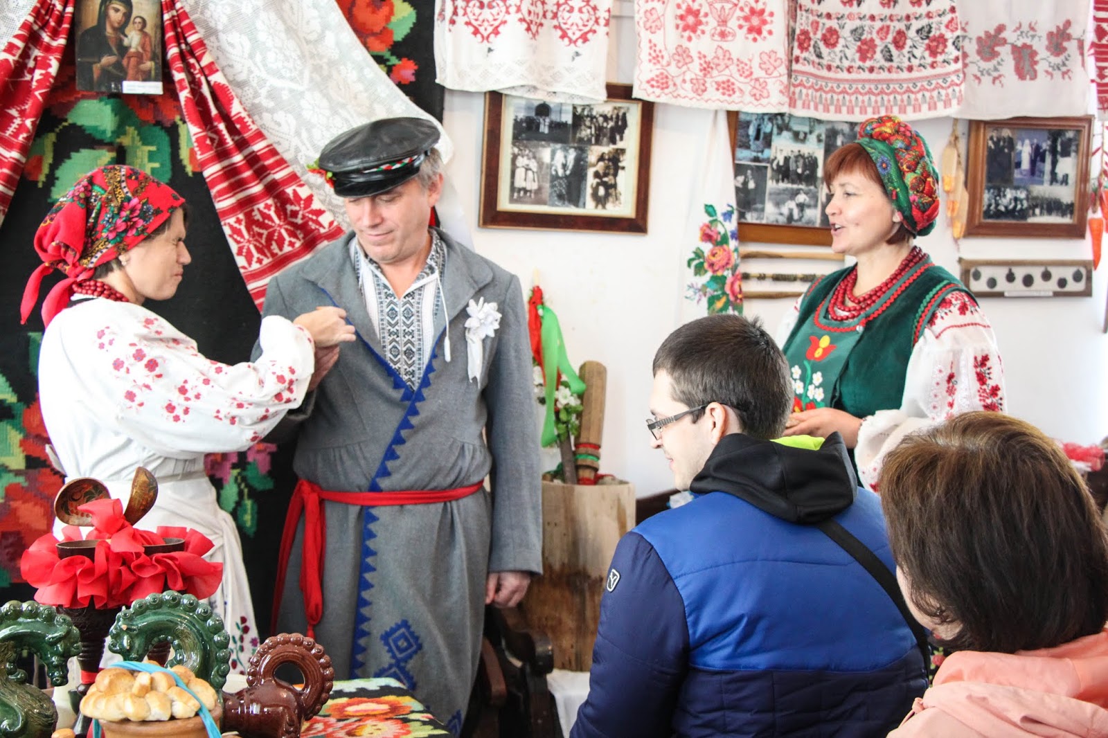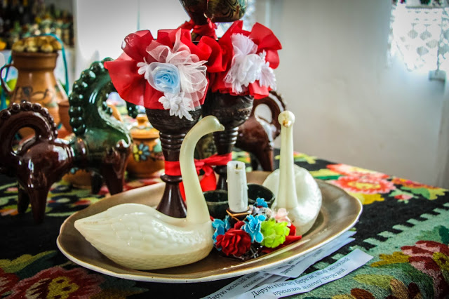Особенность музея в том, что здесь можно не просто притронуться руками к экспонатам, а перенестись в прошлое. Перенестись в прямом смысле этого слова. Сыграть свадьбу или инсценировать ее. В горнице все, вплоть до последнего пустяка — воспроизведенная обстановка быта столетней давности. Участники невероятного действия иногда путают реальность с нереальностью. Как и положено, на свадьбе пьют за здоровье и счастье молодых. Напитки — настоящие. Закуски на столе — древние украинские кушанья, приготовленные по технологии прабабушек.