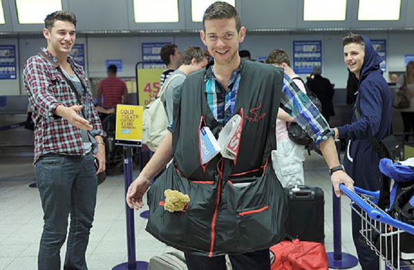Необычную верхнюю одежду придумали, чтобы помочь часто летающим пассажирам избежать очередей на регистрации, исключить плату за багаж и полностью устранить риск его потери. Модульная “аэропортовая куртка” имеет 14 карманов и две съемные «внутренние» панели, в обшей сложности, вмещая в себя около 15 килограммов багажа.