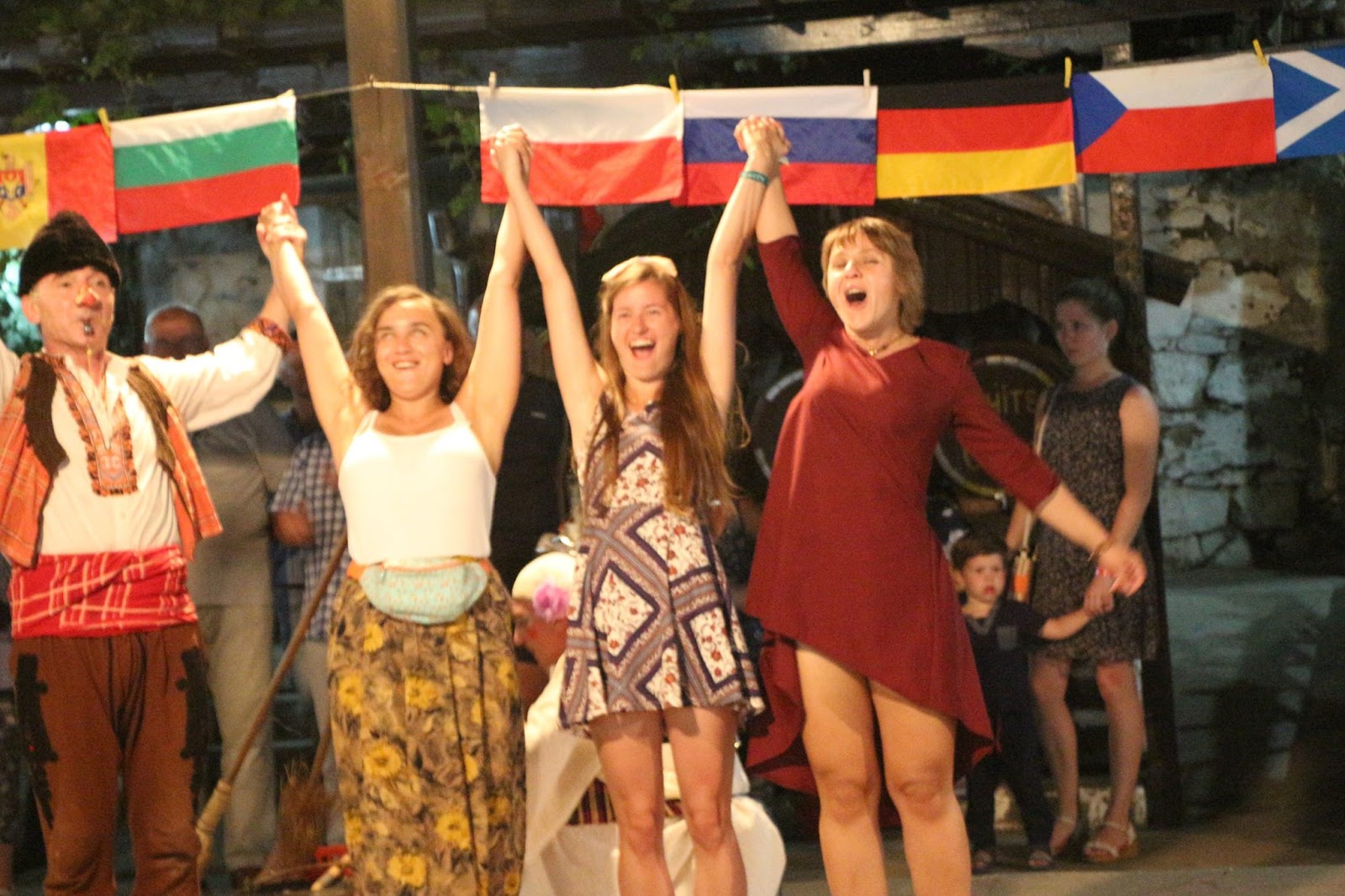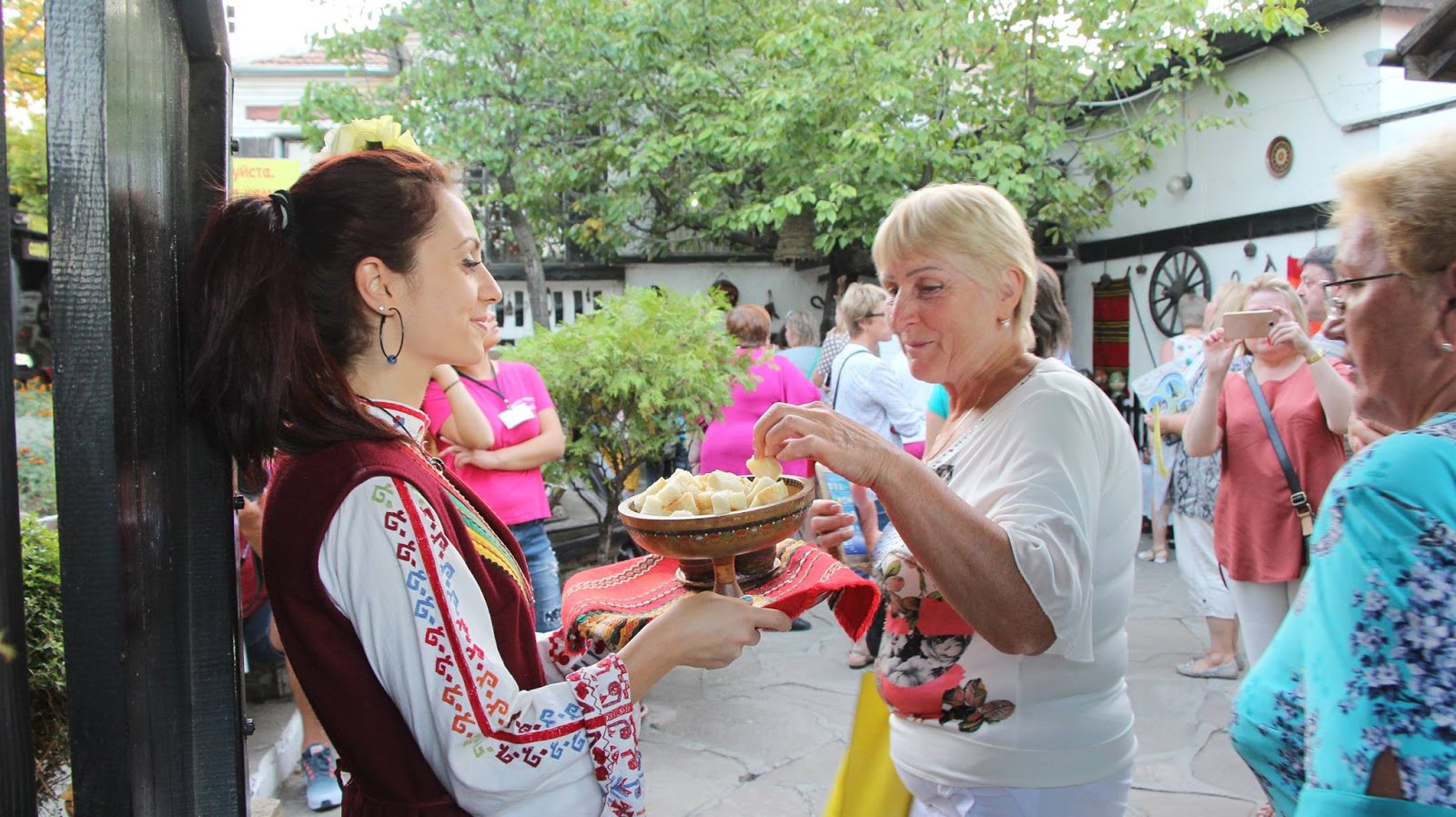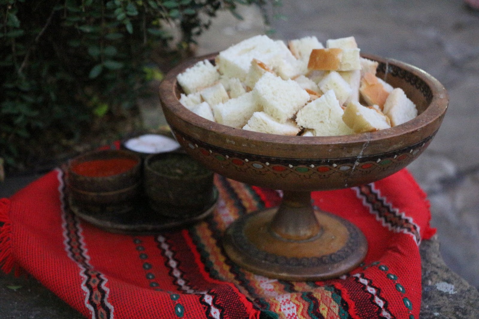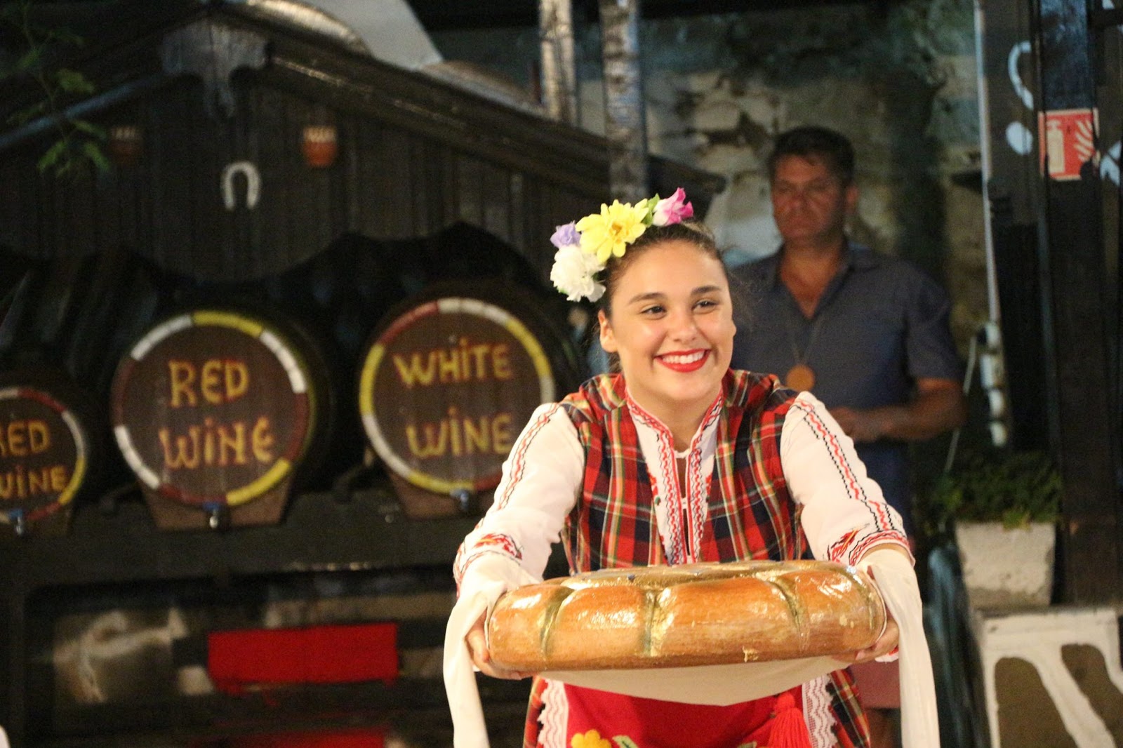 На входе вас встречают звуки волынки и красивые девушки с подносами, на которых расположились наивкуснейший хлеб с болгарскими специями.