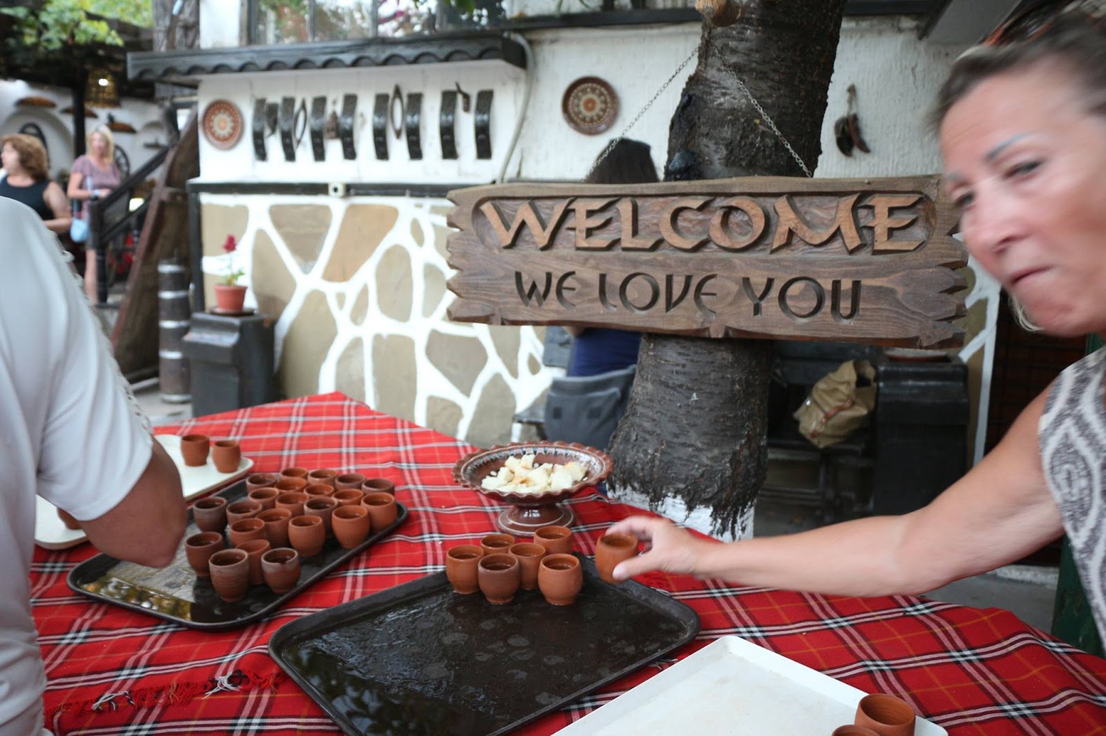 Также вам подносят фирменную стопочку с местным самогоном, под названием ракия. Напиток чудесный, но предупреждаю, сильно алкогольный. Так что тем, кто предпочитает более лёгкие напитки, то можно и отказаться.