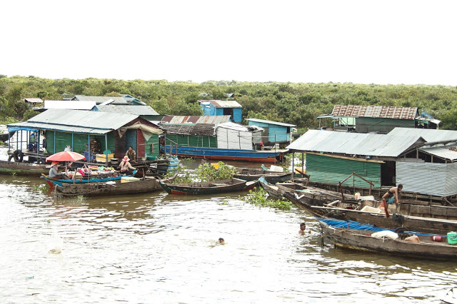 Дома построены на обычных металлических бочках которые связаны между собой, в каких домах люди живут всю жизнь не сходя на берег. Передвигаются только на лодках. У многих рядом с домиками небольшие огородники на которых они выращивают овощи. Жители в основном занимается рыбной ловлей. Вода в озере желтого цвета, удивительно как они умудряются идёт пить. Впрочем у них нет выбора.