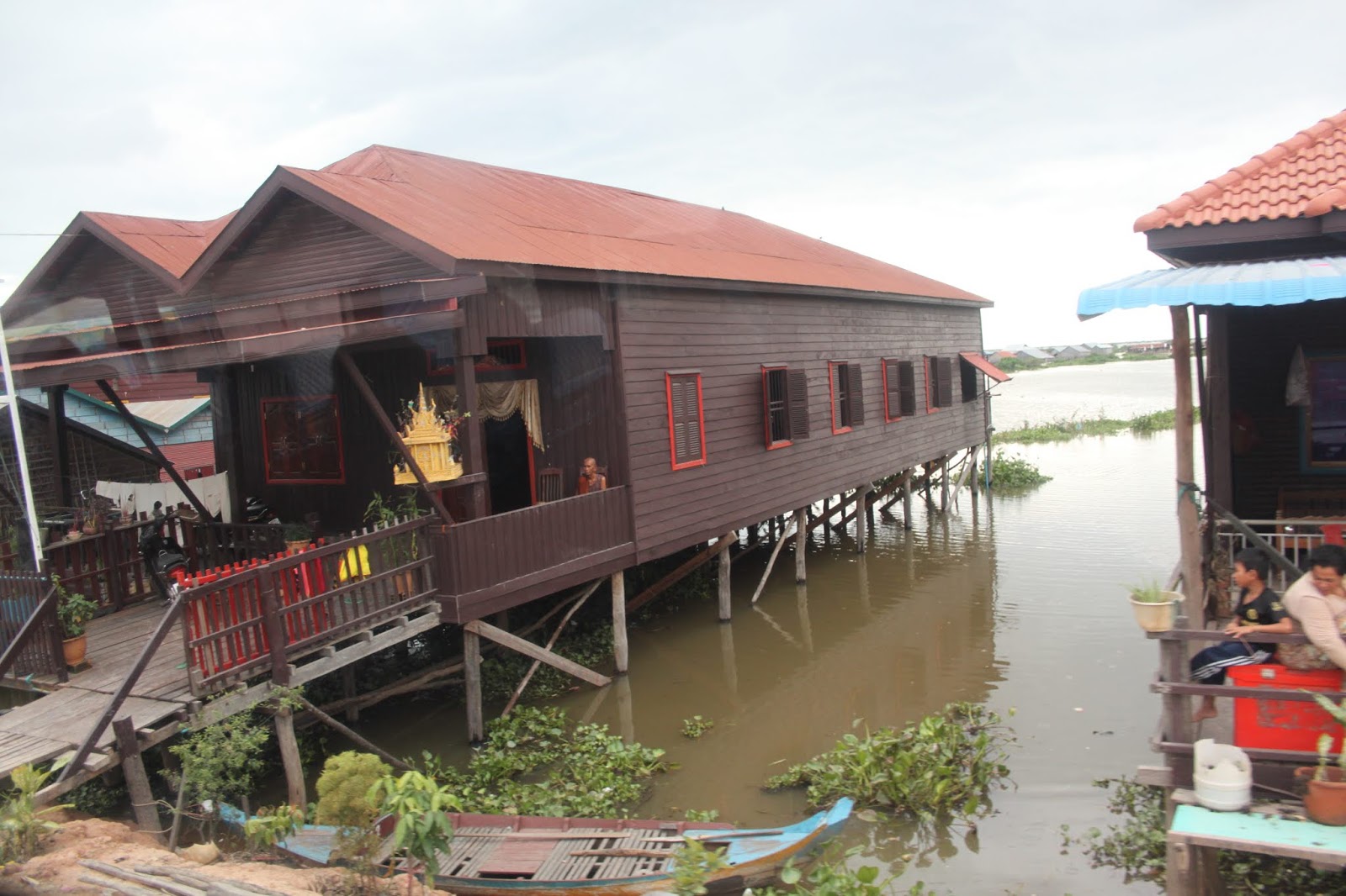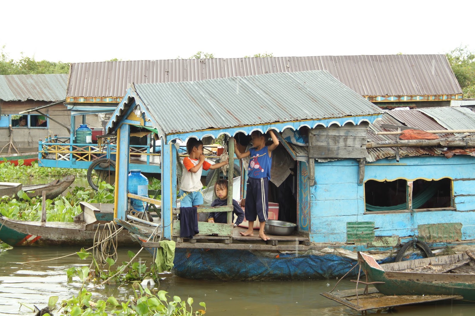 Дома построены на обычных металлических бочках которые связаны между собой, в каких домах люди живут всю жизнь не сходя на берег. Передвигаются только на лодках. У многих рядом с домиками небольшие огородники на которых они выращивают овощи. Жители в основном занимается рыбной ловлей. Вода в озере желтого цвета, удивительно как они умудряются идёт пить. Впрочем у них нет выбора.