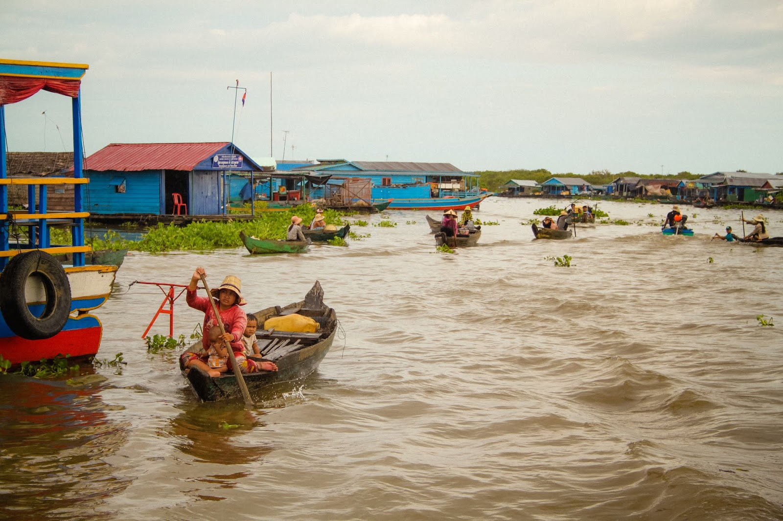 Западных источниках озеро Тонлесап фигурирует как большое озеро. На протяжении большей части года озеро сравнительно небольшое, имеет не больше метра глубины. Однако во время сезона дождей воды и реки Тонлесап вытекающая Из озера и впадающая в Меконг поворачивает вспять в результате чего территория озера увеличивается в 6-7 раз. А глубина достигает 9 м, затопляя окрестности, поля и леса. Благодаря этому создаются хорошие условия для рыбы и для рыбной ловли. Озеро тонлесап один из наиболее продуктивных пресноводных ресурсов для добычи рыбы в мире. Кроме того после схода воды на окрестных землях оседает плодородный ил. Существенные условия для сельского хозяйства. Деревень на озере несколько Хотя обычно говорят Только об этой. Большой на которой проживает более 5000 человек и которая является популярным объектом.