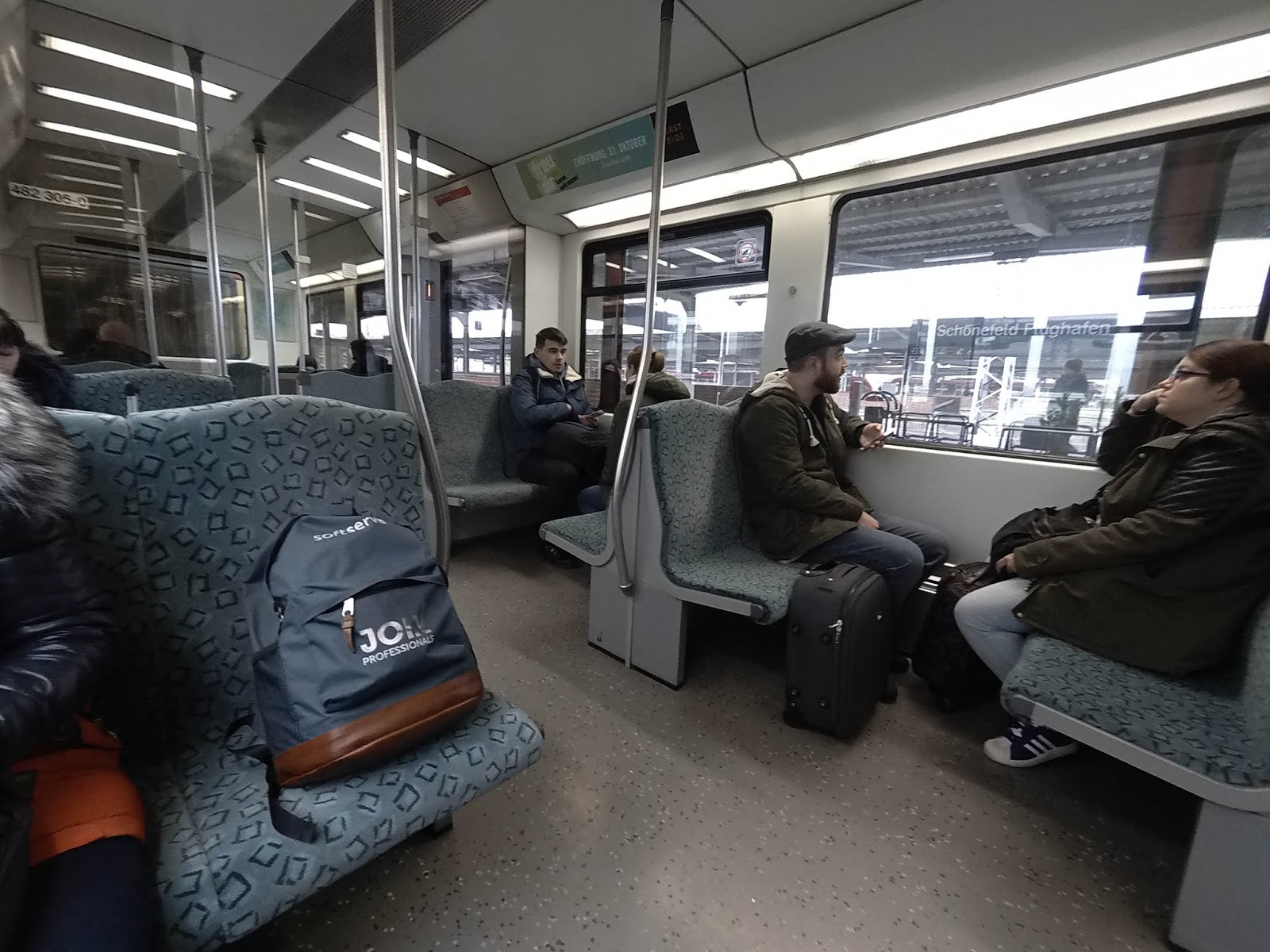 Поезд RB22: Potsdam, Golm, Saarmund, Flughafen Schönefeld. До Потсдама поезд едет 50 минут.