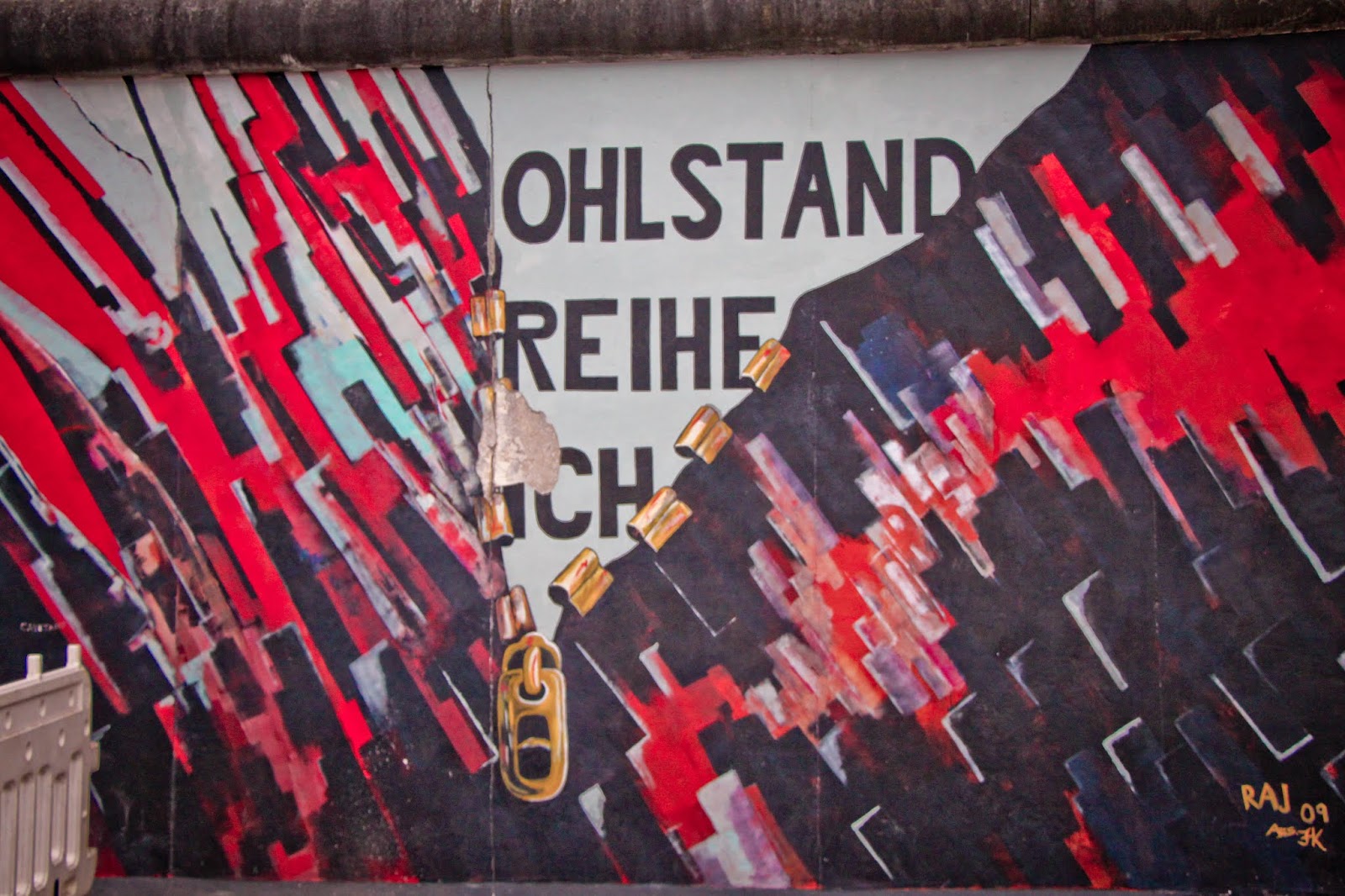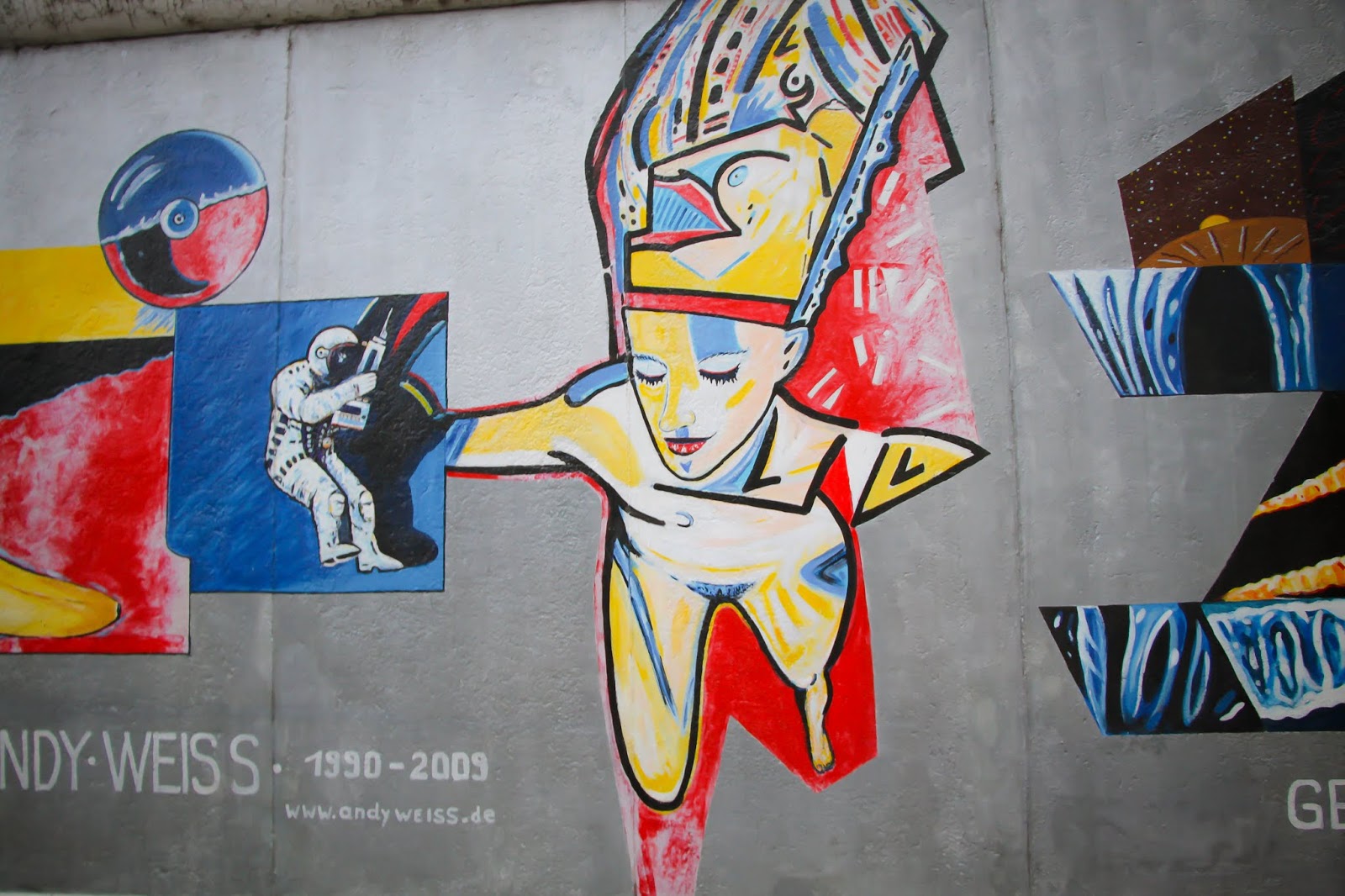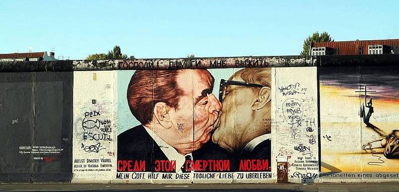 В 1990 году сразу после открытия границы между Западным и Восточным Берлином художники со всего мира начали расписывать участок Берлинской стены вдоль реки Шпрее. 118 художников из 21 страны отразили в 106 картинах политические события Германии 1989-90 гг.