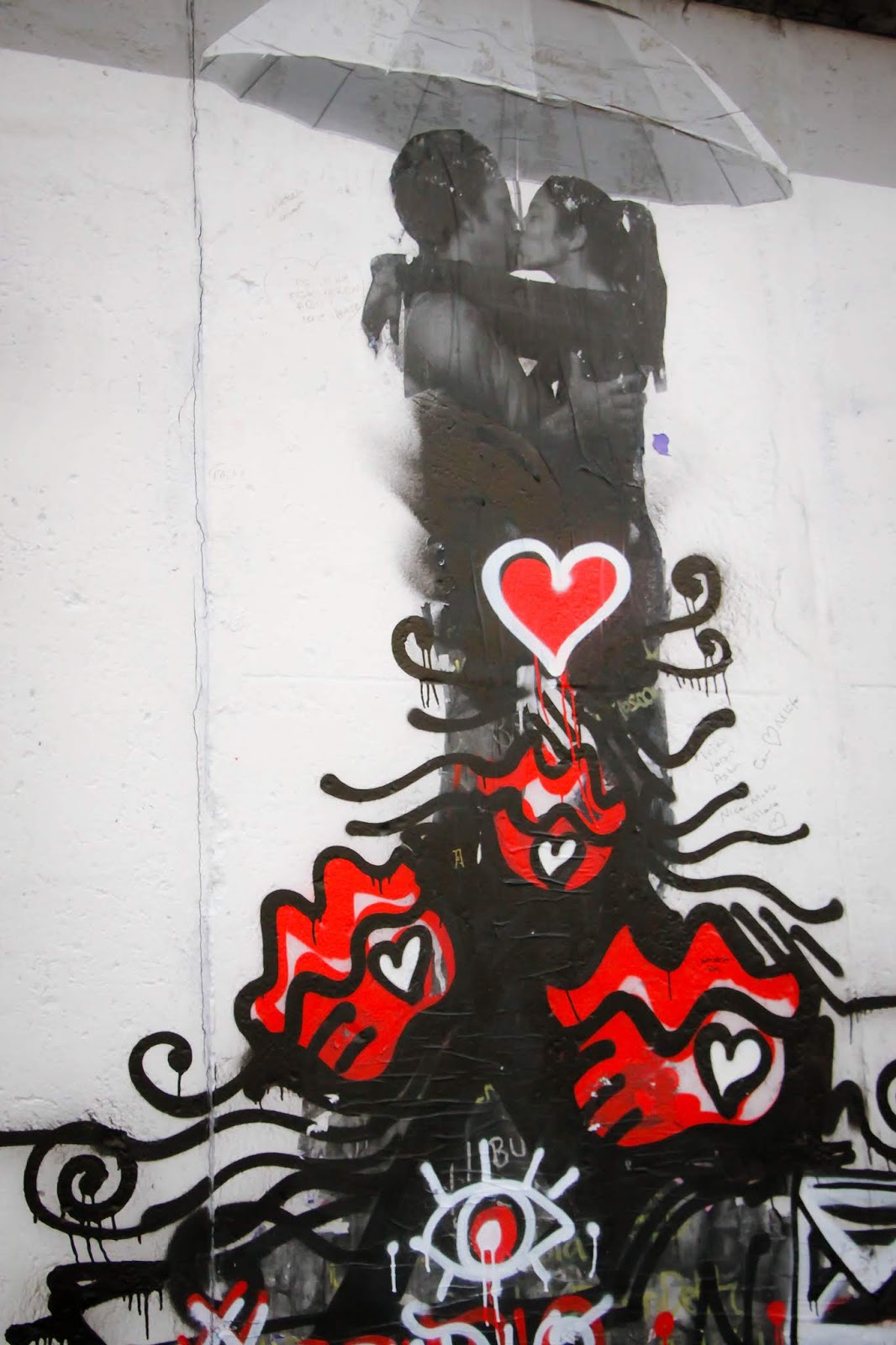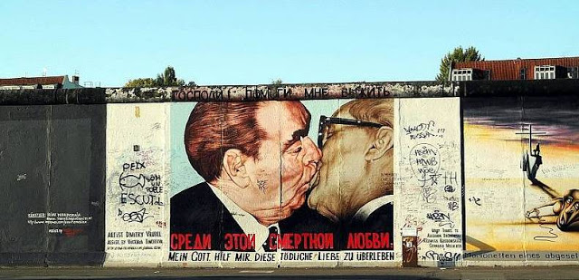 Одна из самых известных работ – граффити российского художника Дмитрия Врубеля «Господи! Помоги мне выжить среди этой смертной любви”, на которой изображён поцелуй бывшего генсека ЦК КПСС Леонида Брежнева и руководителя ГДР Эриха Хонеккера (Erich Honecker).