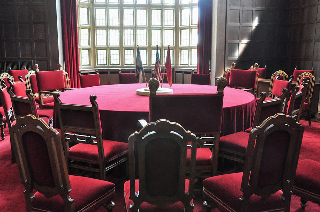 Заседания конференции проходили в Большом зале дворца, который ранее был жилым помещением с деревянной отделкой и уютной мебелью.