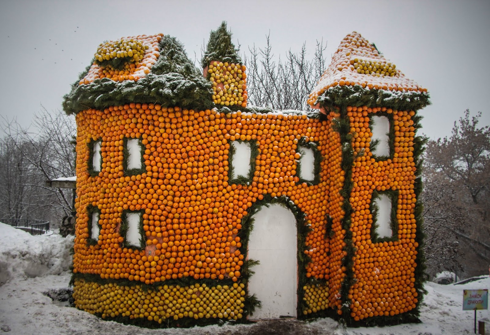 Мы увидели дома Гарри Поттера, Рапунцель, Алладина, Робин Гуда, графа Дракулы, тамплиеров и тому подобное. Каждое цитрусовое здание будет достигало примерно 3-5 метров в высоту.