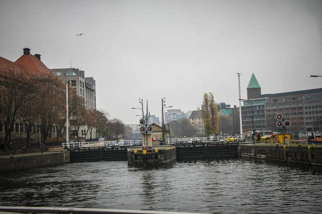 Кстати, мостики здесь, по большей части, очень низкие (extremly low, как говорил аудиогид), и корабль с высокой рубкой не всегда способен пройти под ними. В этом случае на подходе к мосту рубка опускается вниз, и лишь антенна радиосвязи слегка касается моста. Чисто немецкое решение.