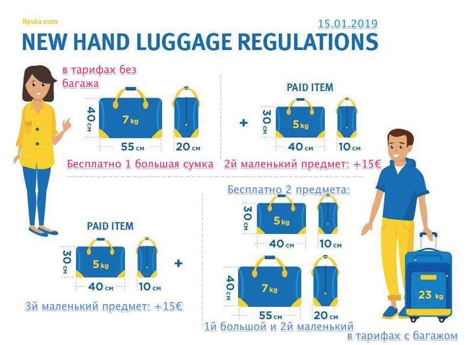 Важно! Начиная с 15 января 2019 года, каждый пассажир МАУ, независимо от класса обслуживания и тарифа, по которому он приобрел свой билет, получит возможность взять с собой еще одну дополнительную единицу ручной клади весом до 5 кг и размерами не более 40x30x10 см, предварительно оплатив по ее перевозки сбор в размере € 15.