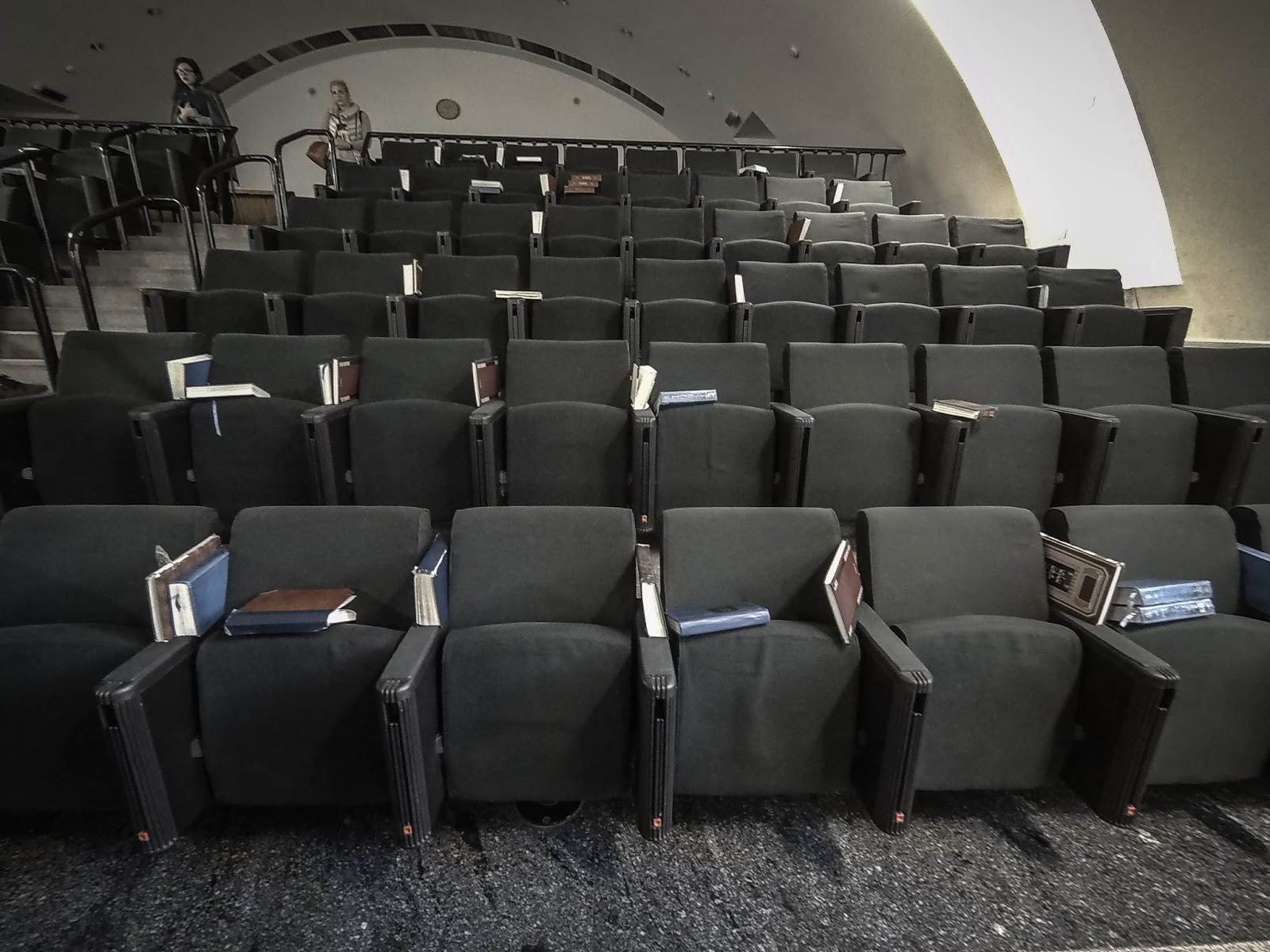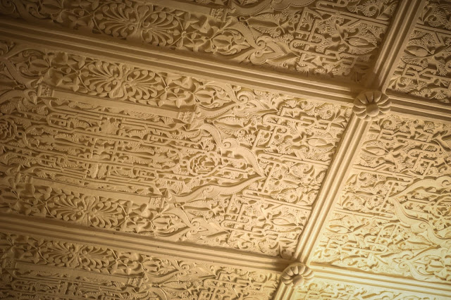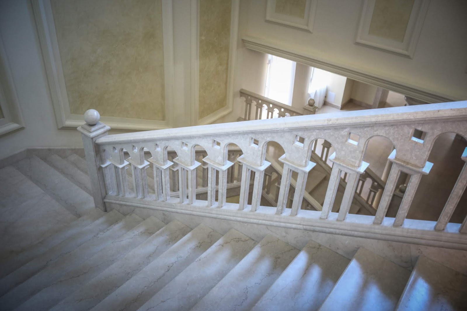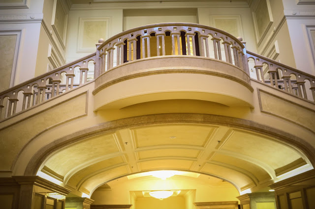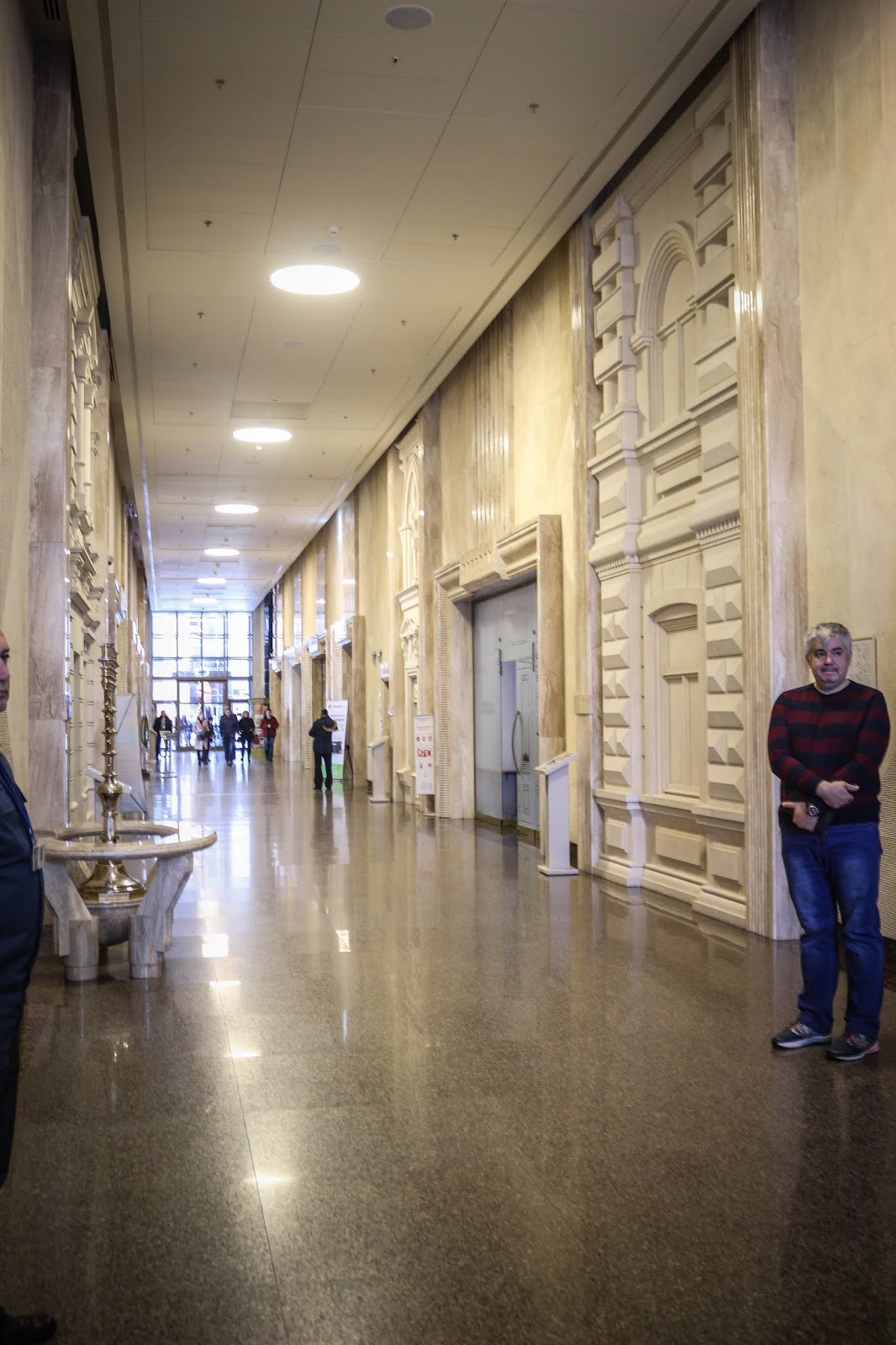 Сразу, конечно, поражает первый этаж, его широченные проходы-коридоры, отделанные уникальным мрамором, с барельефными фрагментами известных зданий бывшего Екатеринослава.