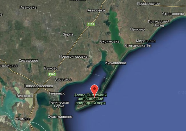 Бирючий («Волчий») остров находится в самом конце Федотовой косы, разделяющей Азовское море и Утлюкский лиман. По сути, это еще 9 км от пгт Кирилловка вдоль длинных просторных пляжей с песчано-ракушечным покрытием по дороге типа «стиральная доска» ─ когда ехать комфортно только при скорости не меньше 80 км/ч.