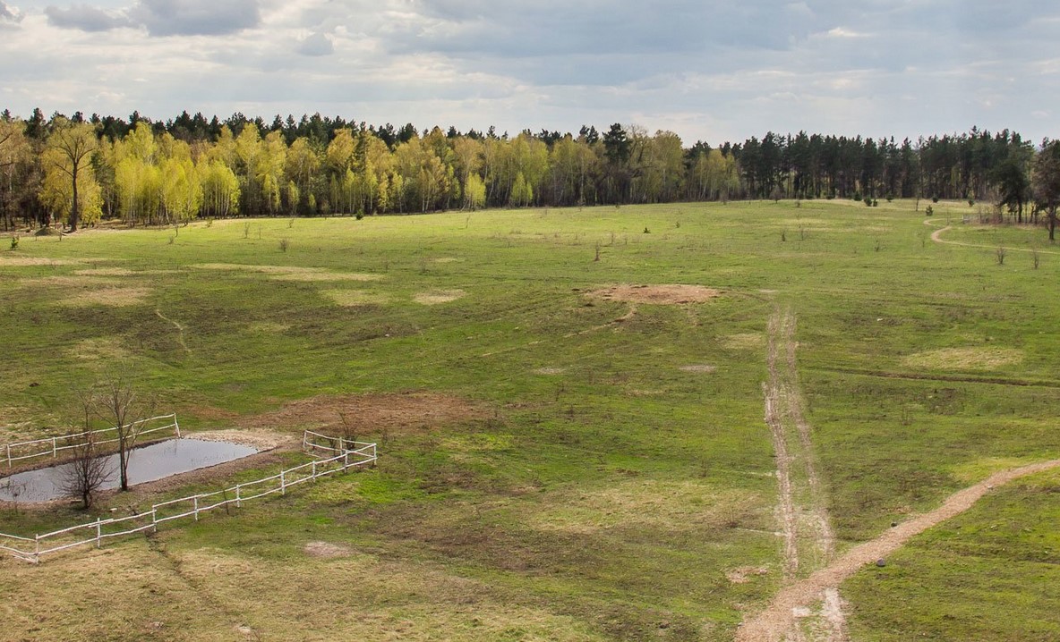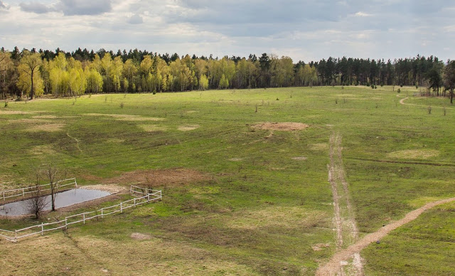 Справа – небольшой водоем, который пока служит водопоем для диких лошадей, а позже там смогут поселиться птицы и рыбы.