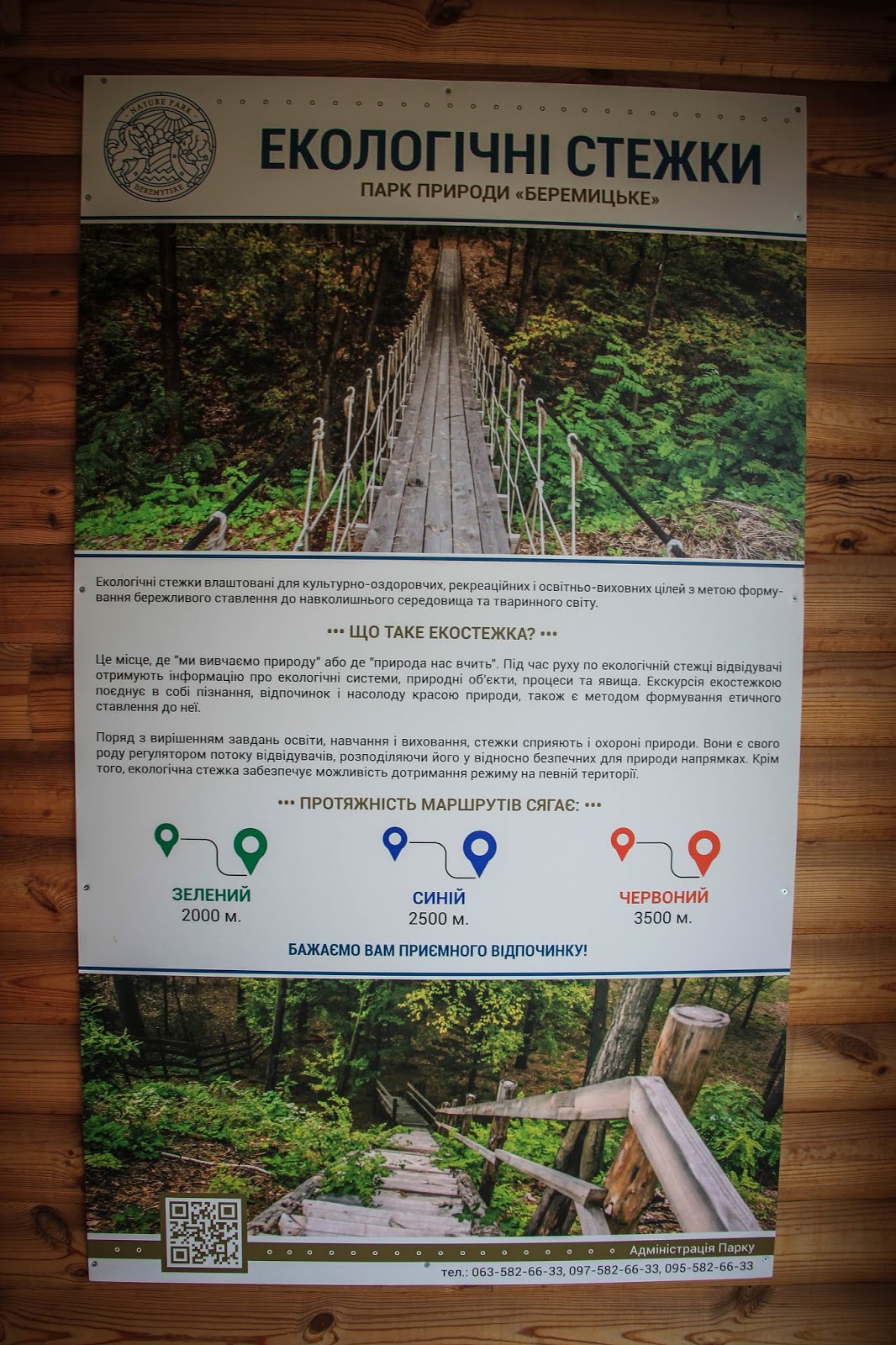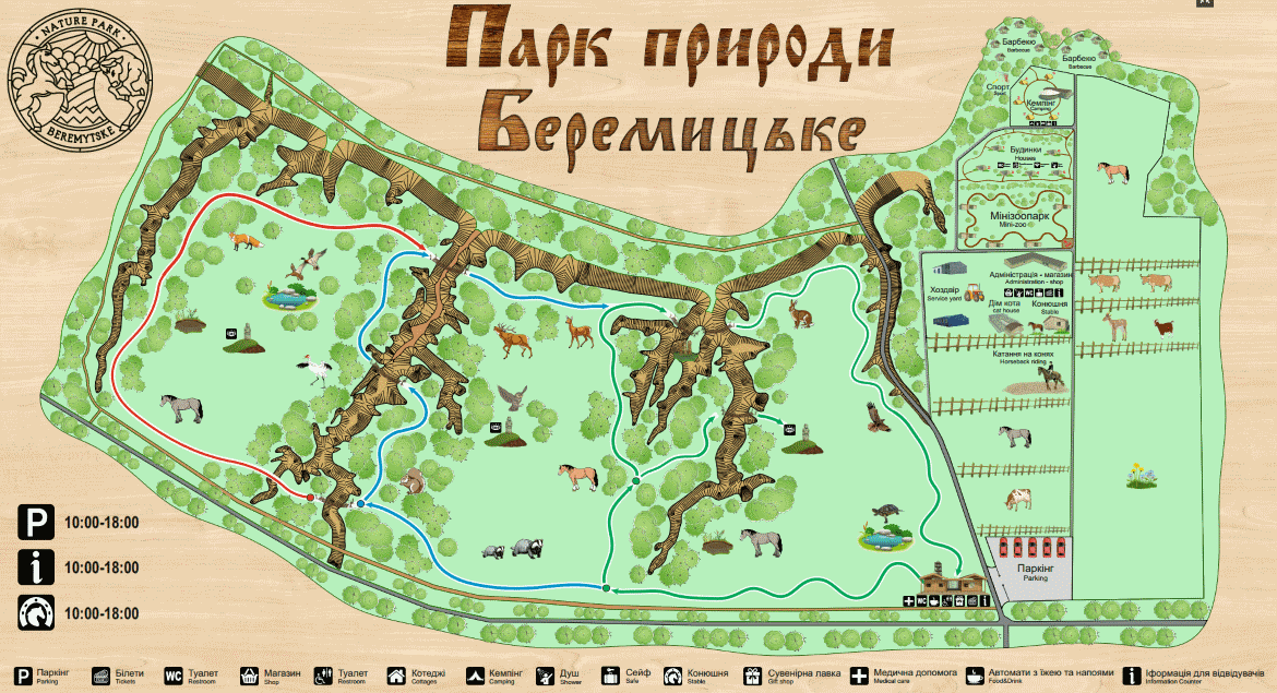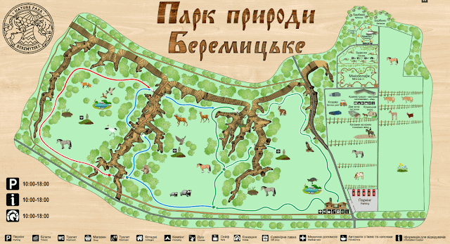Парк работает ежедневно, в летний период – с 10:00 до 19:00. Купив билет в кассе, попадаешь на территорию зон лесостепи и смешанного леса, характерных для Черниговского региона. Вместе с сопровождающим можно пройтись по одной из экотроп.