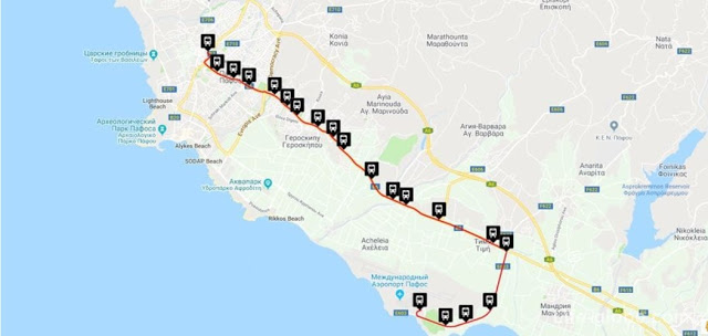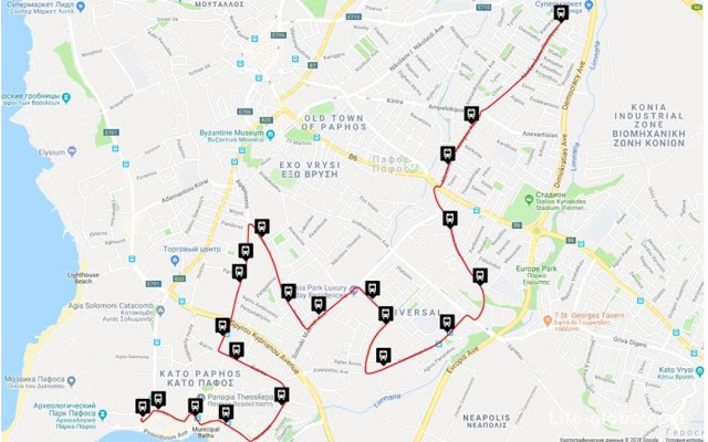 Данный маршрут связывает порт Като Пафоса с супермаркетом Alfamega, по пути делая остановки по городу.