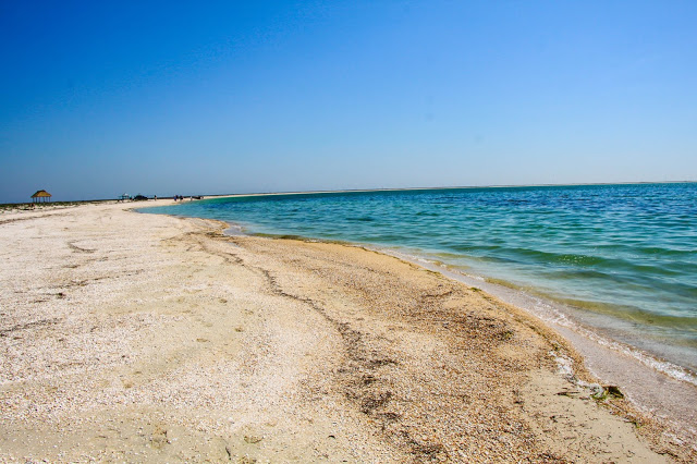 Бирючий остров – это пляж длиной почти 9 км и буквально пара баз отдыха на отшибе. На пляже – мелкая ракушка, смешанная с песком. Как выяснилось, самое комфортное покрытие для пассивного и активного отдыха у воды. Тут тебе и волейбол, тут тебе и лежание на пляже, а малейший ветерок не заставит тебя кашлять и чихать от песчаной пыли, потому как ее здесь просто нет. Миновав зеленую зону в несколько метров и узкую дорогу, попадаете на лиман, где можно ловить рыбу или купаться, если на море шторм, или провожать закат, потому что солнце садится именно на лимане.